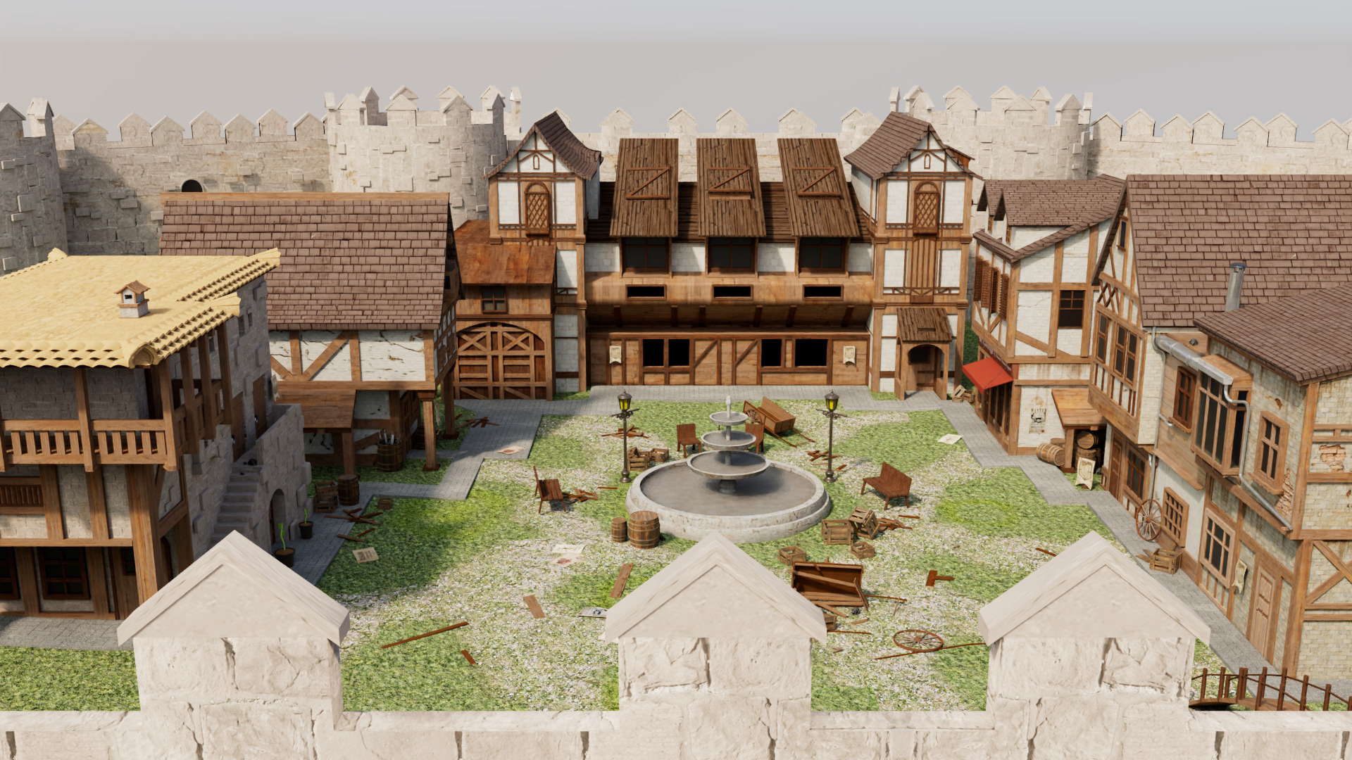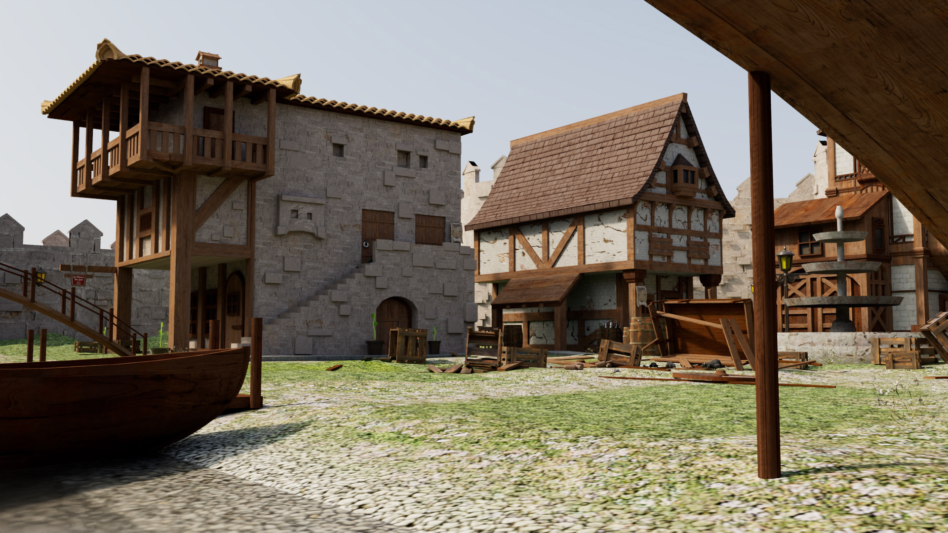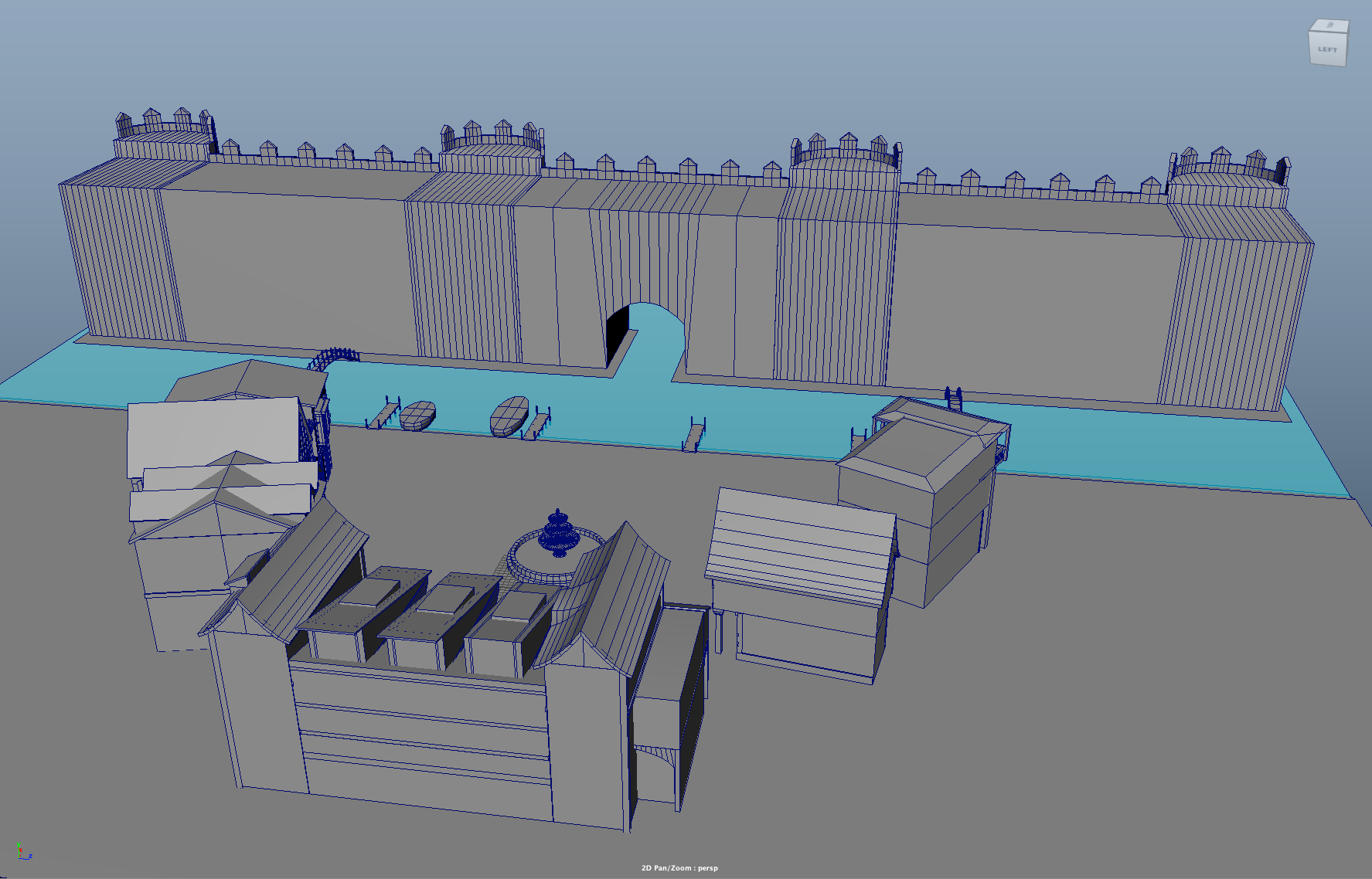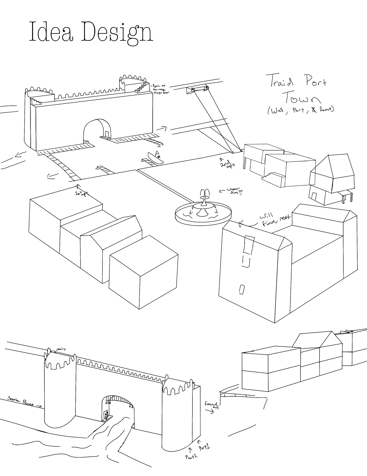 The idea was based on the reference our teacher gave us, but we were given the chance to add one new thing to our project. I chose to make the wall. Also, the idea to make it a port town. The reference is below.