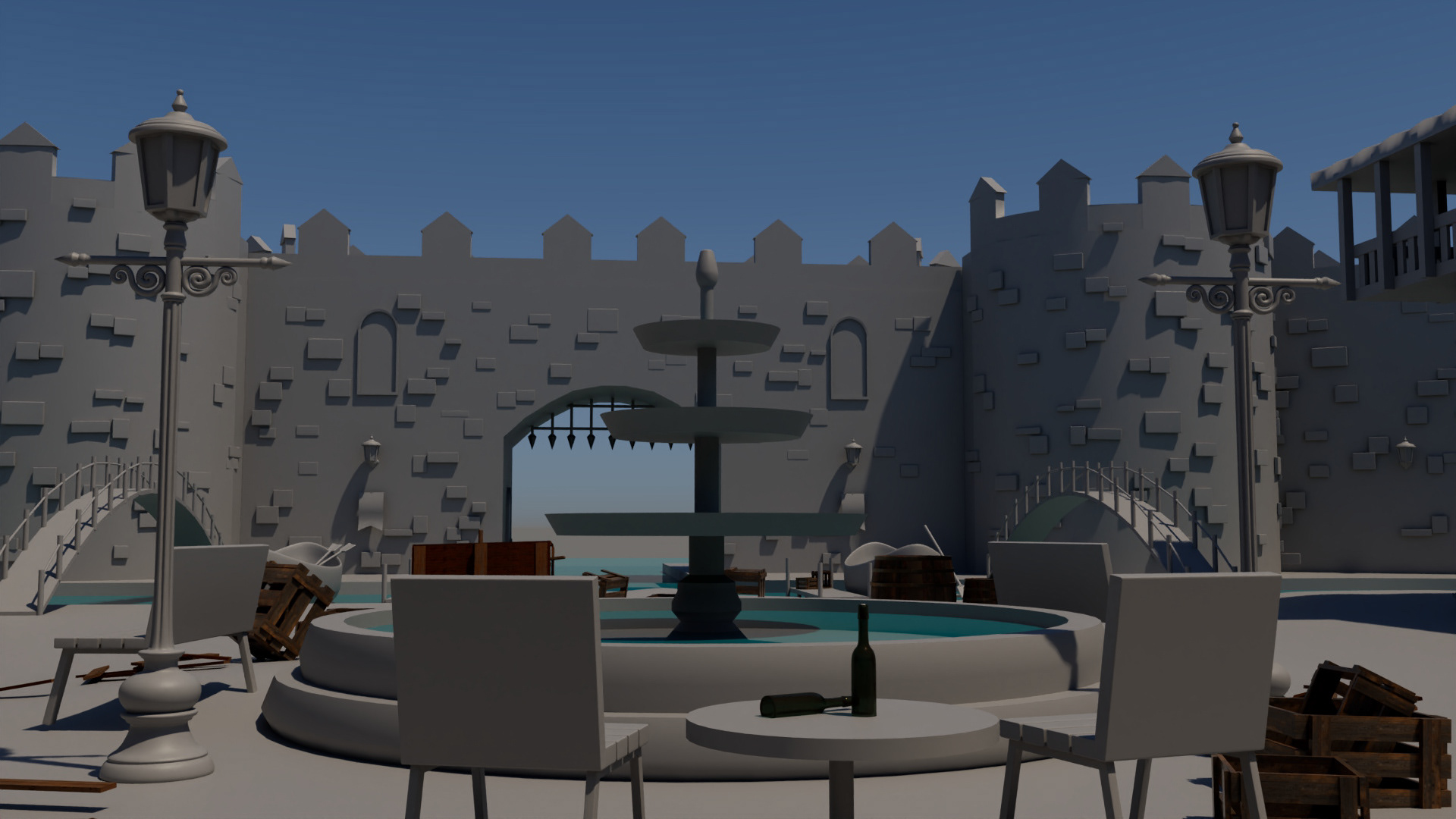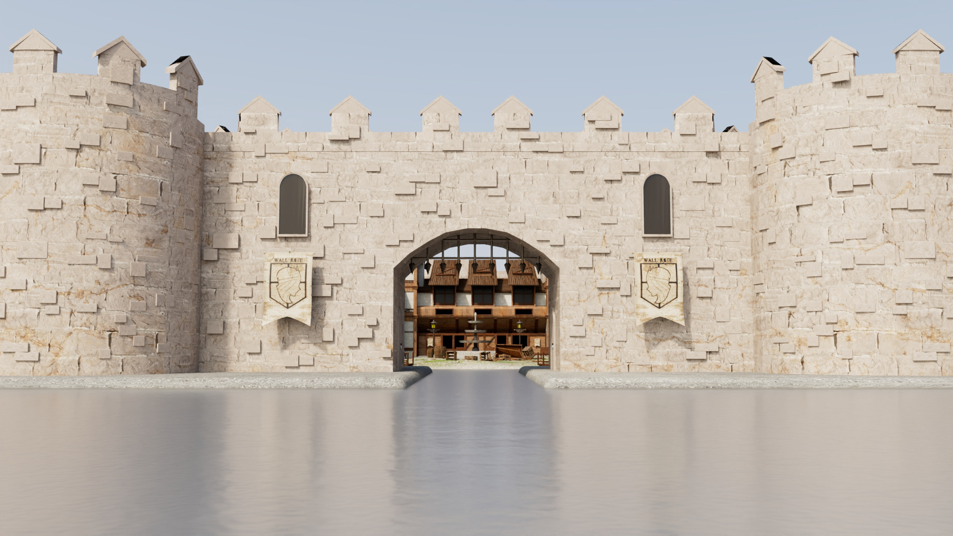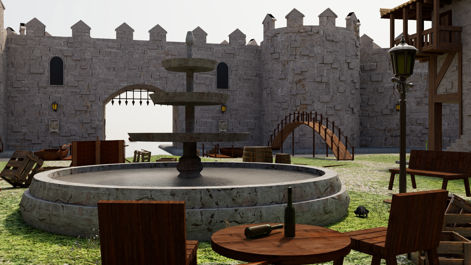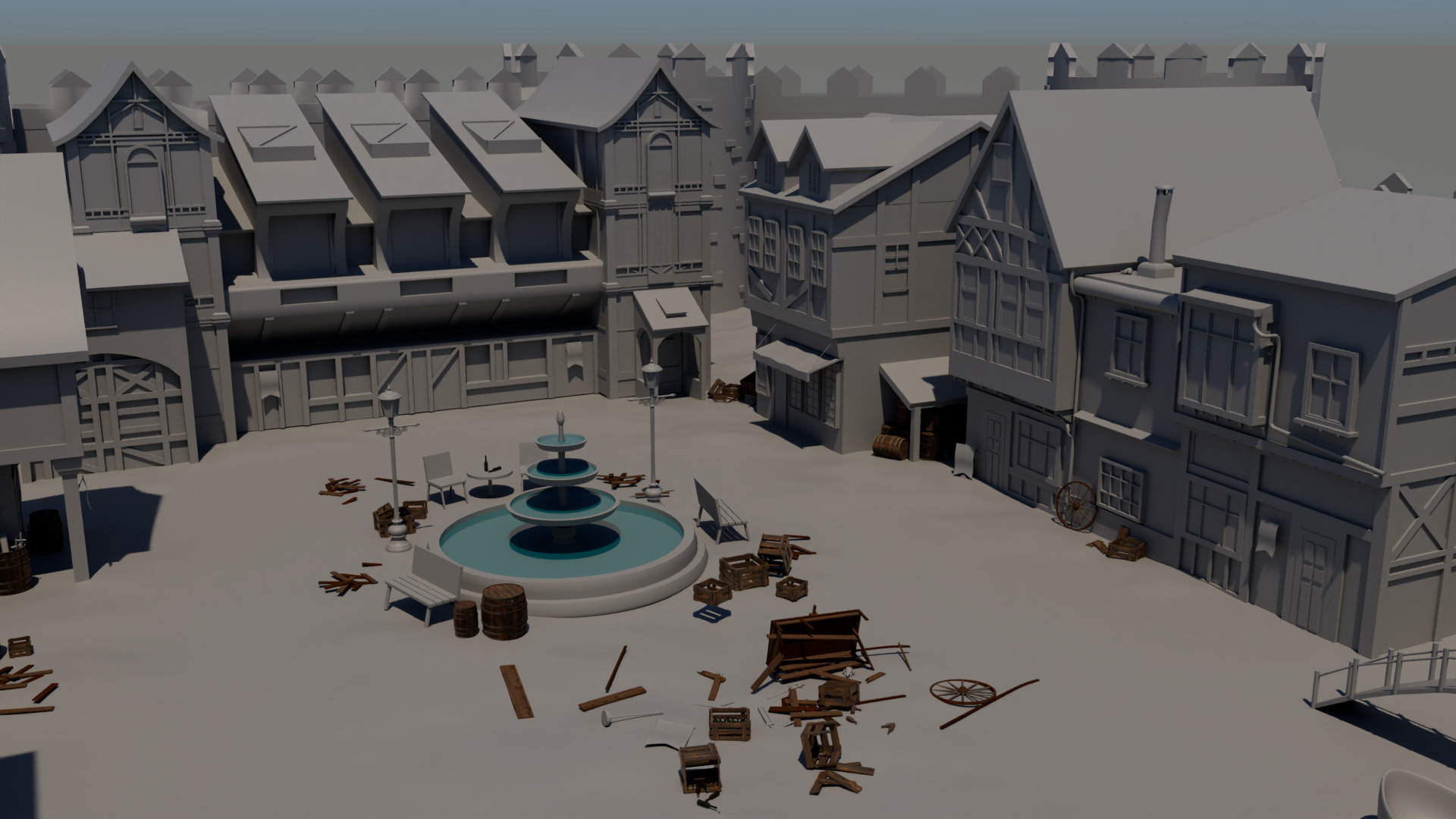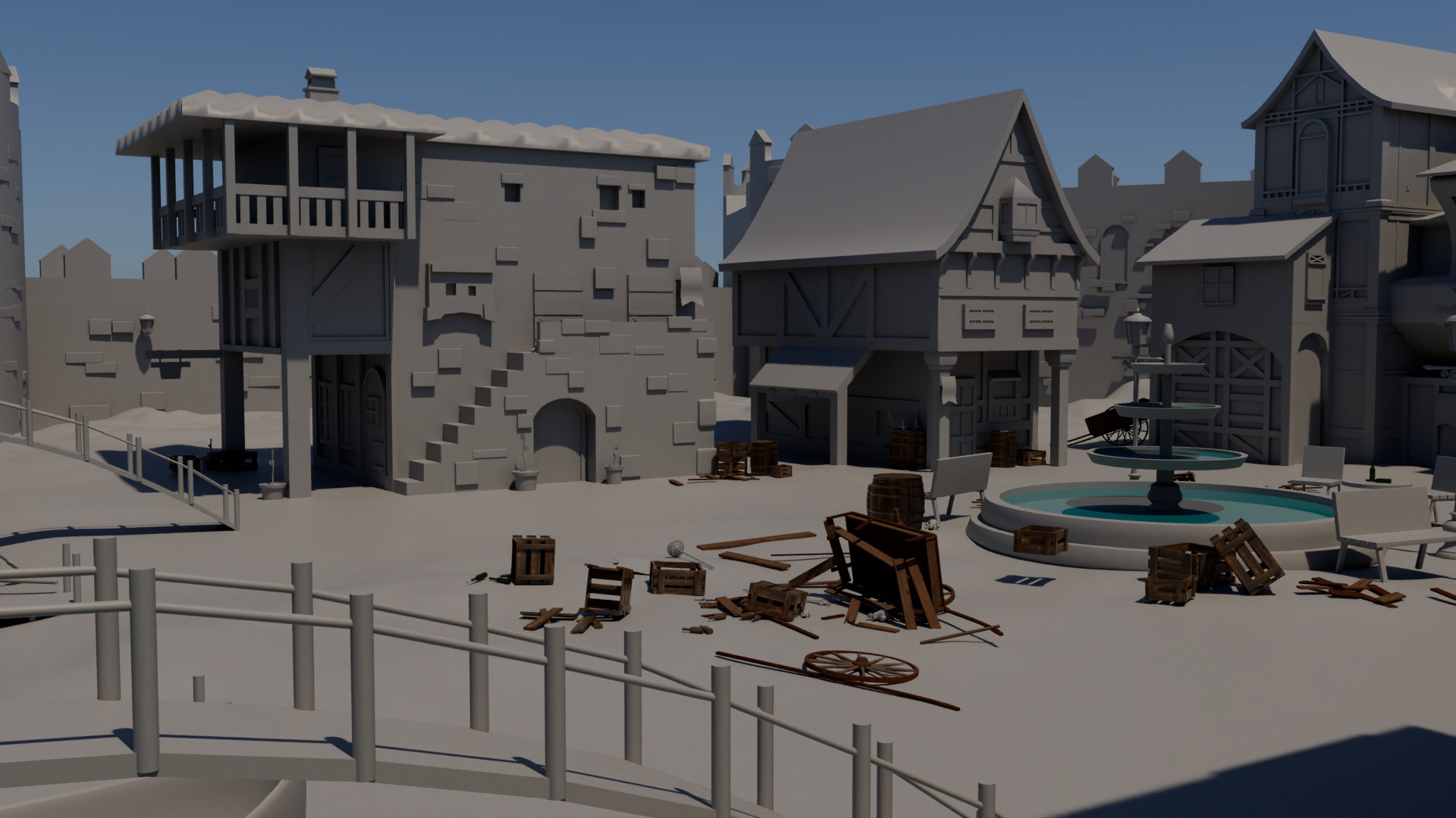 The idea was based on the reference our teacher gave us, but we were given the chance to add one new thing to our project. I chose to make the wall. Also, the idea to make it a port town. The reference is below.